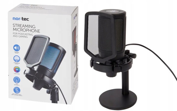 USB Mikrofón Nor-Tec LED na streamovanie, podcast, PC + statív | SMART darček