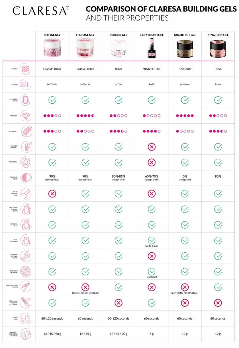 - Snívate o silných, dlhých nechtoch, ktoré vyzerajú prirodzene? Gél HARD&EASY umožňuje predĺžiť dosku už pri tenkej vrstve. Vďaka tomu vyzerá styling ľahko a prirodzene.