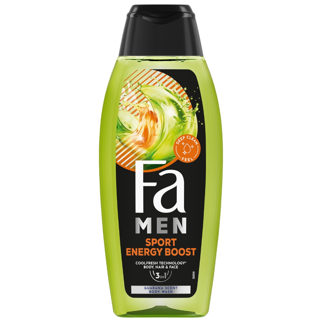 Spoznajte novú verziu fascinujúcej sviežosti! Vyberte si Fa Men Sport Energy Boost sprchový gél s formulou 3v1: na efektívne čistenie tela, tváre a vlasov s osviežujúcou a povzbudzujúcou vôňou guarany a ženšenu, ktorá vám zabezpečí komplexné vzrušenie pod sprchou. Osviežte svoje telo a myseľ a dovoľte svojim zmyslom objavovať nové zážitky každý deň.