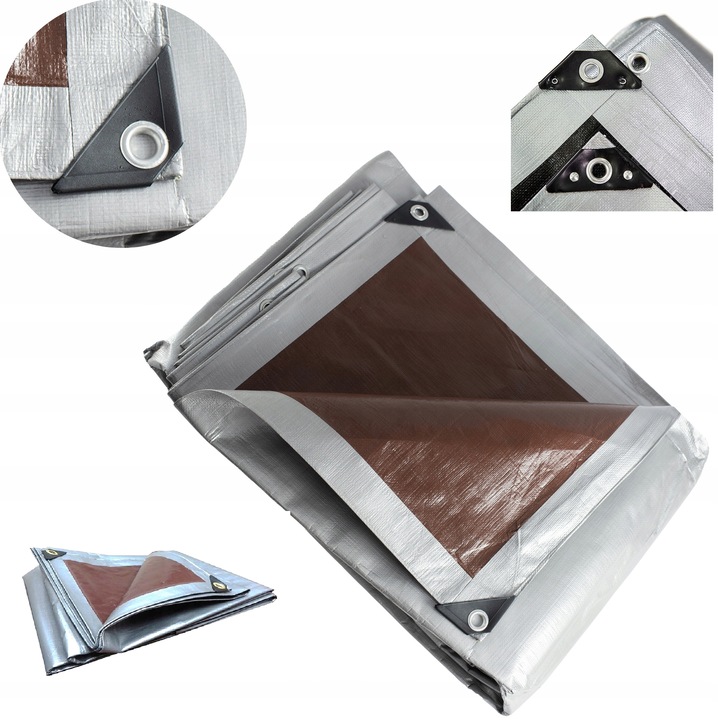 PLANDEKA je vyrobená z dvoch za tepla lisovaných vrstiev polyetylénu, ktoré sú obojstranne pokryté vrstvou laminátu, vďaka čomu účinne chráni pred dažďom, slnkom a snehom. Rohy plachty sú vystužené plastom, čo zabraňuje vytrhávaniu upevňovacích očiek počas nárazov vetra. Strieborná vrstva odráža slnečné lúče a chráni pred zvýšením teploty pod plachtou.