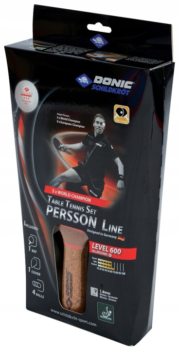 Darčeková sada na stolný tenis DONIC Persson 600 Kork je vhodná na každú príležitosť. Súprava obsahuje všetko, čo potrebujete hráč k ambicióznejšiemu štartu - všetko je navrhnuté tak, aby k sebe ladilo a je ideálnym darčekom. Set obsahuje všestrannú raketu Persson 600 s 1,8 mm špongiou, kvalitný obal na raketu s priehradkou na loptičky a 4 loptičky 3* Avantgarde (priemer 40 mm, nová kvalita polyballu) a je vhodný pre hráčov s pokročilou základnou technikou. Zabudovaná korková rukoväť zaisťuje bezpečné držanie a uchopenie aj mokrými rukami. Okrúhly stredový diel Ergo medzi korkovou rukoväťou a základňou perfektne padne do ruky a zabraňuje otlakom. Táto kompletná sada je cenným darčekom pre juniorov, ktorí už chcú mať vlastné vybavenie.