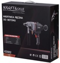 Vŕtačka KD5952 je profesionálny nástroj určený na intenzívne práce v betóne, tehle alebo iných stavebných materiáloch. Vďaka vysokému výkonu 2300 W a možnosti chladenia vodou zariadenie zabezpečuje efektívnu a bezpečnú prácu aj pri dlhodobom vŕtaní. Umožňuje použitie veľkých vrtákov (do Ø202 mm), čo z neho robí ideálne riešenie pre stavebné firmy aj náročných individuálnych používateľov. Dodatočné vybavenie, ako je predĺžená rukoväť a namontovaná podpera na ráme, zabezpečuje presnosť, stabilitu a pohodlie pri používaní za všetkých pracovných podmienok.
