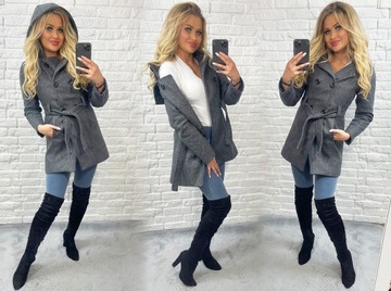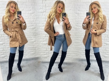 KABÁT S ALPAKI S KAPUCŇOU športový JEANS oversize na jeseň/na zimu